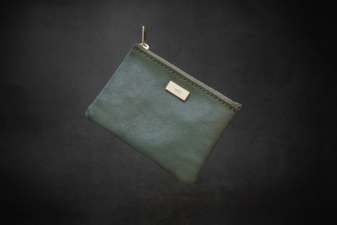 墨綠真皮零錢包 (可客製立體金屬名字)